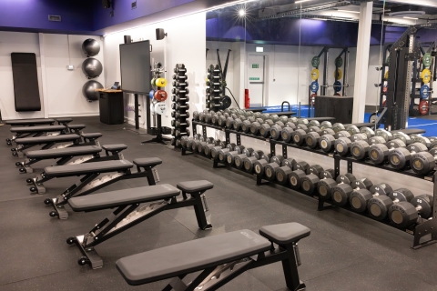 - Extensive free weights including eight adjustable weight benches, 50 kg dumbbell set, competition kettlebells and a range of medicine and slam balls.